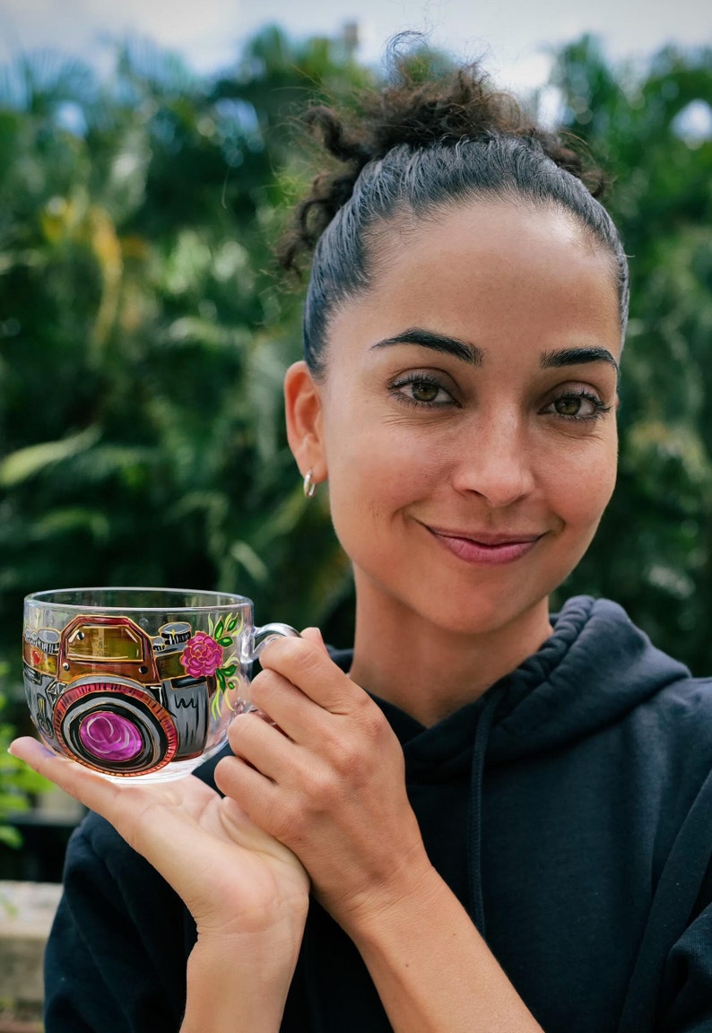 Capture your love for photography with our exquisite hand-painted mug, featuring a charming floral camera design. The vibrant camera illustration adds a touch of creativity to your daily routine, making it a perfect gift for photographers, artists, or anyone who appreciates handmade craftsmanship.