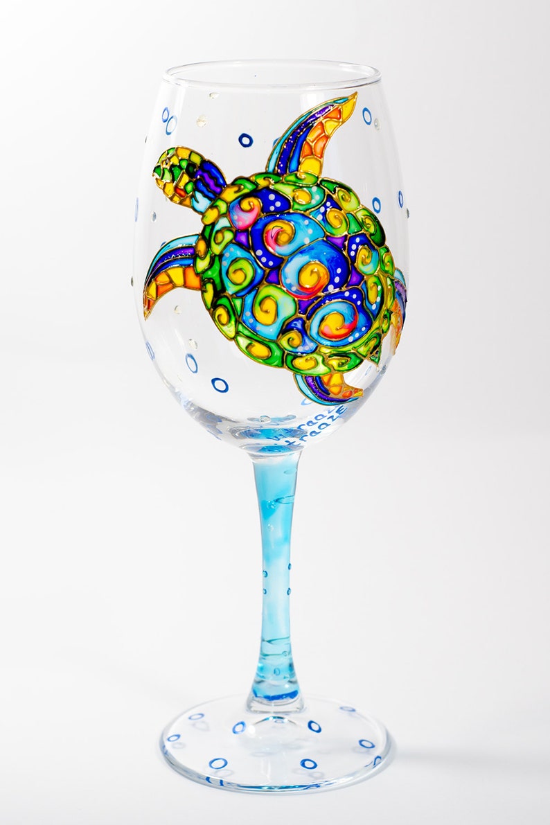 Sea Turtle Wine Glass: Hand Painted Beach Theme Gift